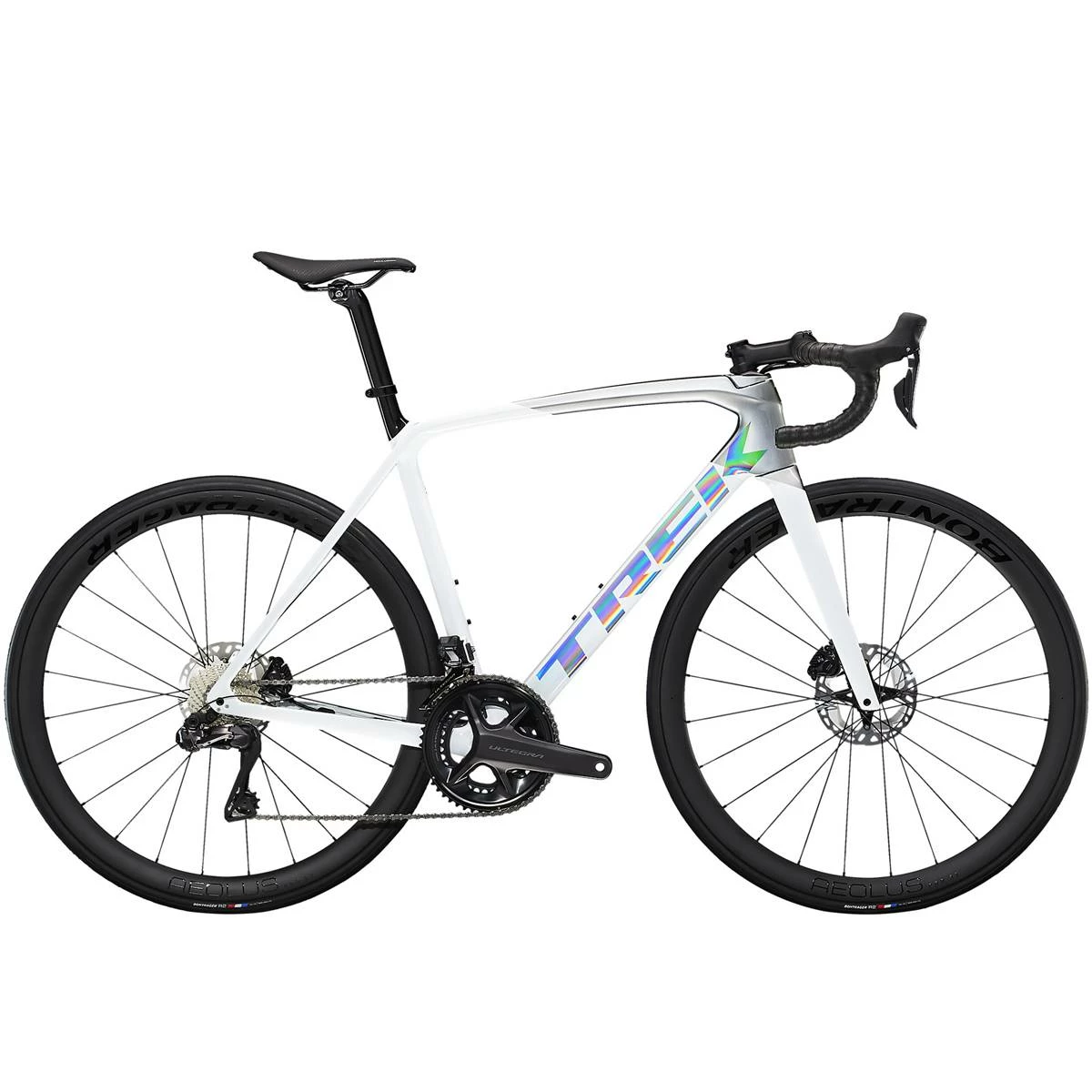 En terme d’équipements, impossible d’être déçu(e) avec son cadre et une fourche en OCLV Carbon Série 500 légers et aérodynamiques, une toute nouvelle transmission électronique sans Shimano Ultegra Di2 2×12 vitesses, des roues en carbone Bontrager Aeolus Pro 37 et des freins à disque hydrauliques Shimano Ultegra à fixation Flat-Mount.